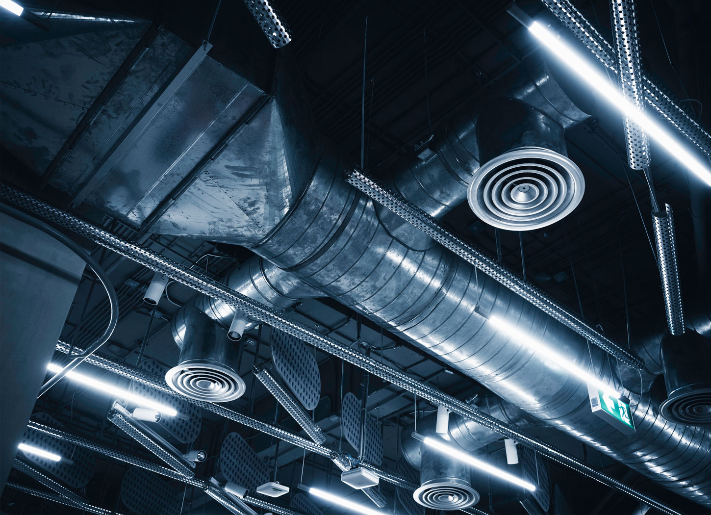 汚れた空気とキレイな空気を入れ替え、空間を衛生的に保ちます。飲食店のトイレをはじめ、食品工場や精密機械工場、病院のクリーンルームなど、様々な場所で重要な役割を果たしています。